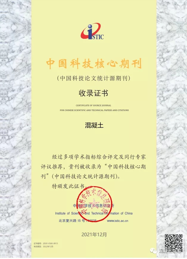 喜報(bào)|《混凝土》雜志再次被收錄“中國(guó)科技核心期刊”!