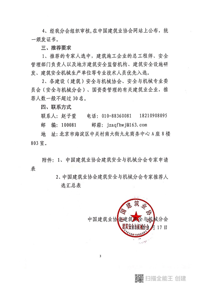 附件:1、中國建筑業協會建筑安全與機械分會專家申請表