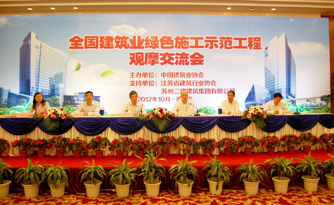 為進一步促進建筑業(yè)發(fā)展方式轉(zhuǎn)變,建設(shè)資源節(jié)約型、環(huán)境友好型社會,加強和促進建筑業(yè)節(jié)能減排與綠色施工,中國建筑業(yè)協(xié)會根據(jù)鄭一軍會長關(guān)于“協(xié)會要把加強和促進建筑節(jié)能減排和綠色施工作為今明兩年工作的重中之重,抓住不放,抓出成效”的指示,自2010年起,在行業(yè)內(nèi)率先開展綠色施工示范工程創(chuàng)建活動。兩年來,已有兩批共93項工程被列為全國建筑業(yè)綠色施工示范工程。為交流創(chuàng)建全國建筑業(yè)綠色施工示范工程經(jīng)驗,發(fā)揮示范工程的集聚輻射帶動作用, 10月11-12日,中國建筑業(yè)協(xié)會在蘇州舉辦了全國建筑業(yè)綠色施工示范工程觀摩交流會,并發(fā)布了《全國建筑業(yè)綠色施工示范工程申報與驗收指南》。中國建筑業(yè)協(xié)會副會長兼秘書長吳濤、江蘇省建筑行業(yè)協(xié)會會長高學(xué)斌出席會議并講話。會議由中建協(xié)副秘書長劉宇林主持。本次觀摩交流會得到了江蘇省建筑行業(yè)協(xié)會和蘇州二建建筑集團有限公司的大力支持,來自全國建筑業(yè)企業(yè)和相關(guān)行業(yè)協(xié)會的代表千余人參會,規(guī)模空前。
