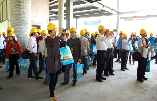 與會代表參觀第二批全國建筑業(yè)綠色施工示范工程——中新生態(tài)大廈土建總包工程