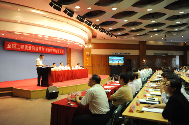 9月4日,住房城鄉建設部召開全國工程質量治理兩年行動電視電話會議,傳達、學習國務院領導同志關于抓好工程質量工作的重要批示,部署開展工程質量治理兩年行動工作。住房城鄉建設部黨組書記、部長陳政高出席會議并講話,部黨組成員、副部長齊驥主持會議,部黨組成員、副部長王寧就質量治理行動中要著力抓好的六項工作進行了部署,部黨組成員、中央紀委駐部紀檢組組長石生龍出席會議。住房城鄉建設部建筑市場監管司負責人通報了2013年以來房屋市政工程質量安全事故及轉包違法行為典型案例查處情況,宣讀了對30家工程質量安全管理優秀企業通報表揚的通知。中國建筑業協會副會長兼秘書長吳濤代表協會宣讀了《保障工程質量禁止轉包違法分包行為倡議書》。北京、山東、福建、天津、安徽5個省市住房城鄉建設部門負責人進行了交流發言。陳政高部長指出,今天部署的工程質量治理兩年行動,是經過近四個月的籌備后,經部常務會議討論決定的,并報請國務院領導同志同意。國務院領導同志對抓好工程質量作出批示。我們今天這個會議,實際上是傳達、學習、落實國務院領導同志重要批示的會議。
