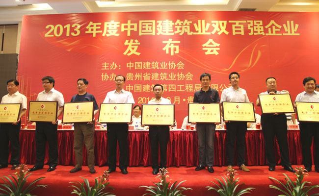 2013年度中國建筑業(yè)雙百強企業(yè)代表上臺領牌