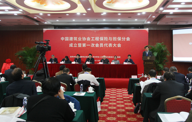 2017年1月16日,中國建筑業(yè)協(xié)會工程保險與擔保分會成立暨第一次會員代表大會在北京召開。住房城鄉(xiāng)建設部工程質量安全監(jiān)管司副司長曾憲新、質量處處長廖玉平,建筑市場監(jiān)管司招投標處處長齊心,中國建筑業(yè)協(xié)會副會長兼秘書長吳濤、副秘書長李蓬和趙峰出席會議;來自各企事業(yè)單位的代表和新聞媒體的同志共200余人參加了會議。會議由中國建筑業(yè)協(xié)會副秘書長李蓬主持。