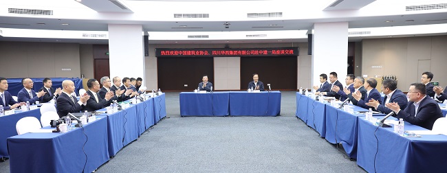 楊斌董事長(zhǎng)介紹了華西集團(tuán)的歷史沿革和業(yè)績(jī),并結(jié)合打造四川省級(jí)建筑產(chǎn)業(yè)園介紹了華西集團(tuán)未來的發(fā)展規(guī)劃。他希望,通過合作致力為四川省由建筑業(yè)大省向建筑業(yè)強(qiáng)省轉(zhuǎn)變貢獻(xiàn)力量,充分發(fā)揮華西集團(tuán)與中建一局良好的品牌和市場(chǎng)影響力,未來雙方建立起溝通機(jī)制,就工程建設(shè)、工程技術(shù)、工程管理多方面展開合作。攜手共進(jìn),走好合作之路。