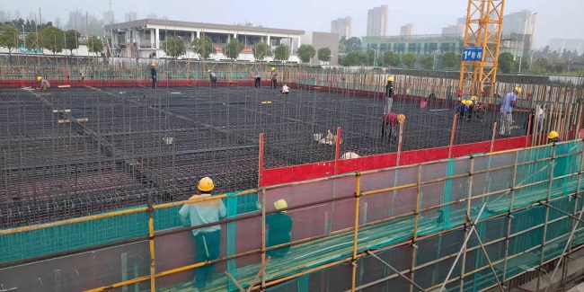 10月1日疊合池A-a、B-a頂板及池壁板完成混凝土澆筑,使用鋼筋200t左右,1000m³混凝土,此次澆筑難點主要是大體積混凝土施工、池壁吊模施工以及鋼筋密度過密施工空間有限,不便于振搗及找平收面等工作開展。
