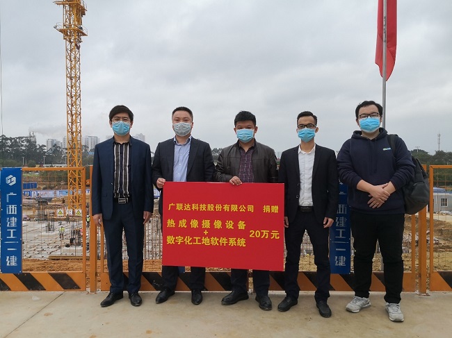 在廣西壯族自治區(qū)人民醫(yī)院邕武醫(yī)院平戰(zhàn)結(jié)合病房樓項(xiàng)目臨時(shí)黨支部揭牌儀式上,由廣聯(lián)達(dá)數(shù)字施工BG廣西公司總經(jīng)理伍君先生代表廣聯(lián)達(dá)公司,向項(xiàng)目部捐贈(zèng)了價(jià)值20萬(wàn)元的熱成像攝像設(shè)備和數(shù)字化工地軟件系統(tǒng),為疫情期間項(xiàng)目復(fù)工提供數(shù)字化管理與防疫保障,為堅(jiān)守在抗擊疫情第一線的建設(shè)人員送去健康守護(hù)與關(guān)愛(ài),與他們共同堅(jiān)守“抗疫”戰(zhàn)爭(zhēng)一線。