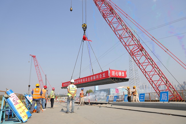 合龍儀式上,姚寬一致歡迎詞。他表示,要以最優(yōu)秀的管理團(tuán)隊(duì),最強(qiáng)大的資源配置,最過硬的責(zé)任擔(dān)當(dāng),弘揚(yáng)鐵軍作風(fēng)和工匠精神,全力以赴實(shí)現(xiàn)大橋年底通車,打造經(jīng)得起歷史檢驗(yàn)的安全工程、綠色工程、精品工程,以中建智慧、中建方案、中建力量,全力拓展浐灞生態(tài)區(qū)幸福空間,不斷滿足人民群眾對(duì)美好生活的向往。