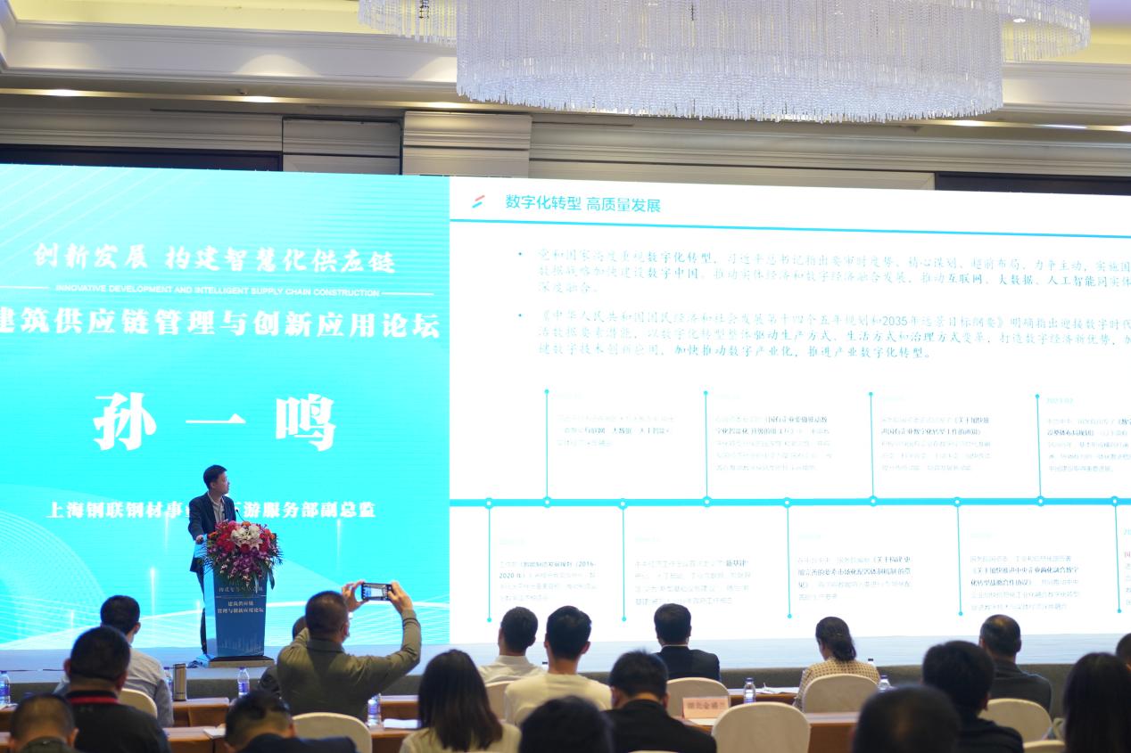鐵建云采事業部總經理李懷賀、上海鋼聯鋼材事業群下游服務部副總監孫一鳴、上海期貨交易所商品一部資深經理馮夏宗、江蘇中超控股股份有限公司董事長俞雷、山西建設投資集團有限公司集中采購交易服務中心主任郝志強、中聯重科新材料總經理助理兼營銷公司總經理曹熙元、中建四局物流發展有限公司副總經理謝杰、上海土木信息科技有限公司聯合創始人厲倫娟、浙江新天下易建科技有限公司董事長王平、常州中天浩云供應鏈有限公司總經理戴夢嵐、萬科采筑電商平臺大宗產品業務部合伙人羅晨等11位嘉賓圍繞建筑業供應鏈現狀及未來趨勢,分享創新實踐經驗,探討了智慧供應鏈生態鏈建設、金融創新及工程全生命周期供應鏈服務等內容,為提升建筑產業鏈供應鏈現代化水平貢獻智慧。