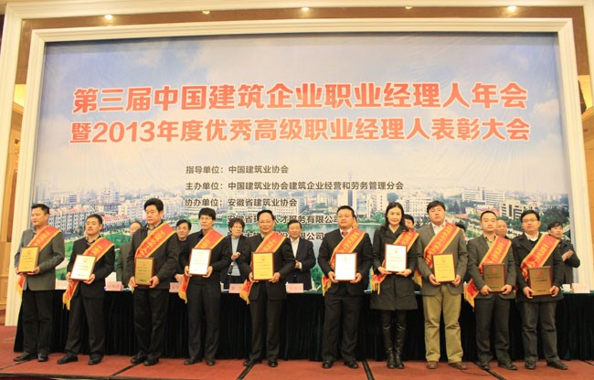 12月6日,由中國建筑業(yè)協(xié)會建筑企業(yè)經(jīng)營和管理分會主辦的第三屆中國建筑企業(yè)職業(yè)經(jīng)理人年會暨2013年建筑企業(yè)優(yōu)秀職業(yè)經(jīng)理人表彰大會在安徽池州舉行。