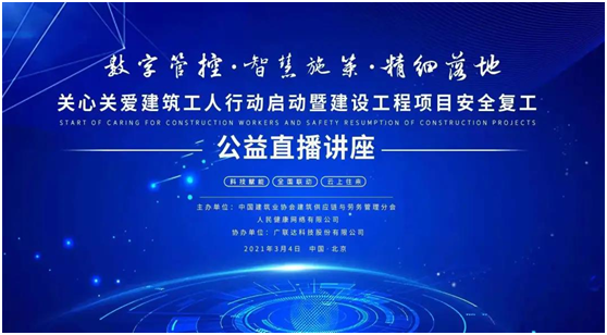 3月4日,由中國建筑業協會建筑供應鏈與勞務管理分會、人民健康網絡有限公司主辦,廣聯達科技股份有限公司協辦的“關心關愛建筑工人行動啟動暨建設工程項目安全復工公益直播講座(2021)”成功舉辦。活動旨在貫徹落實住房和城鄉建設部等部門《關于加快培育新時代建筑產業工人隊伍的指導意見》,提升企業疫情防控常態化安全意識,加強建筑工人權益保障,增強建筑工人獲得感、幸福感、安全感, 推動企業科學有序復工。本次活動得到了住房和城鄉建設部建筑市場監管司、各地建筑業協會、廣大建筑企業的大力支持和積極響應。會議直播累計觀看量達24000人次。