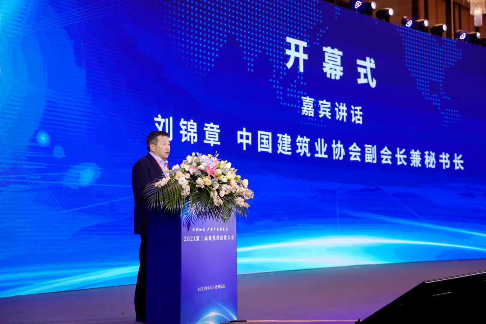 10月21日,以“創新融合 共建產業新生態”為主題,由中國建筑業協會主辦,中國建筑業協會建筑供應鏈與勞務管理分會、江蘇省建筑行業協會、中億豐建設集團股份有限公司、中國建筑第八工程局有限公司、杭州新中大科技股份有限公司等單位共同承辦的2021第三屆建筑供應鏈大會在江蘇昆山隆重召開。來自全國各地區的政府主管部門、協會領導、企業代表及行業媒體等近千名代表參加了大會。